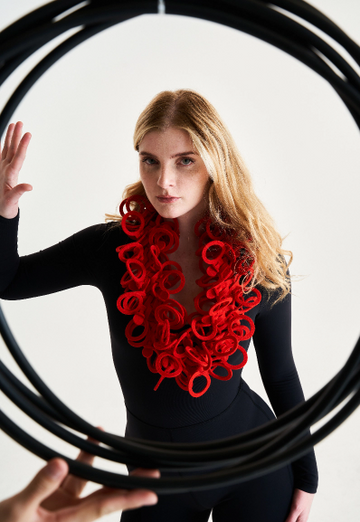 Kolye TJN is a progressive, felt-based retail brand necklace for both women and men, launched in 2020, and operating through e-commerce and private sales. All the collections are created in Canada by the inhouse designer and dedicated production team. Tijen began the initial design process and was later joined by Angie, with her energy and creativity. Self-interlocking and pinning systems are used for the structure. One hundred percent, sustainably sourced, wool-felt has been chosen as the primary material.